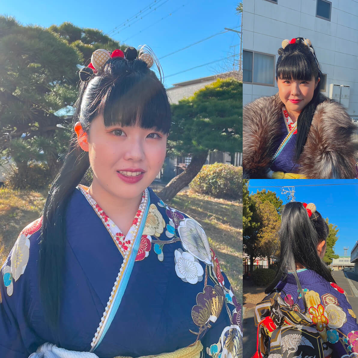 髪色を振袖と合わせてみたり、髪飾りで雰囲気を演出したり、フリソコーデに帽子を合わせてみたり…