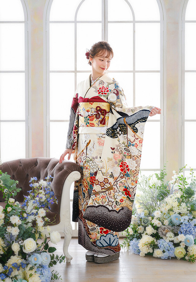 来店してからご希望の振袖を試着することができます。もし試着したい振袖がある場合は、あらかじめ店舗にお伝えください。